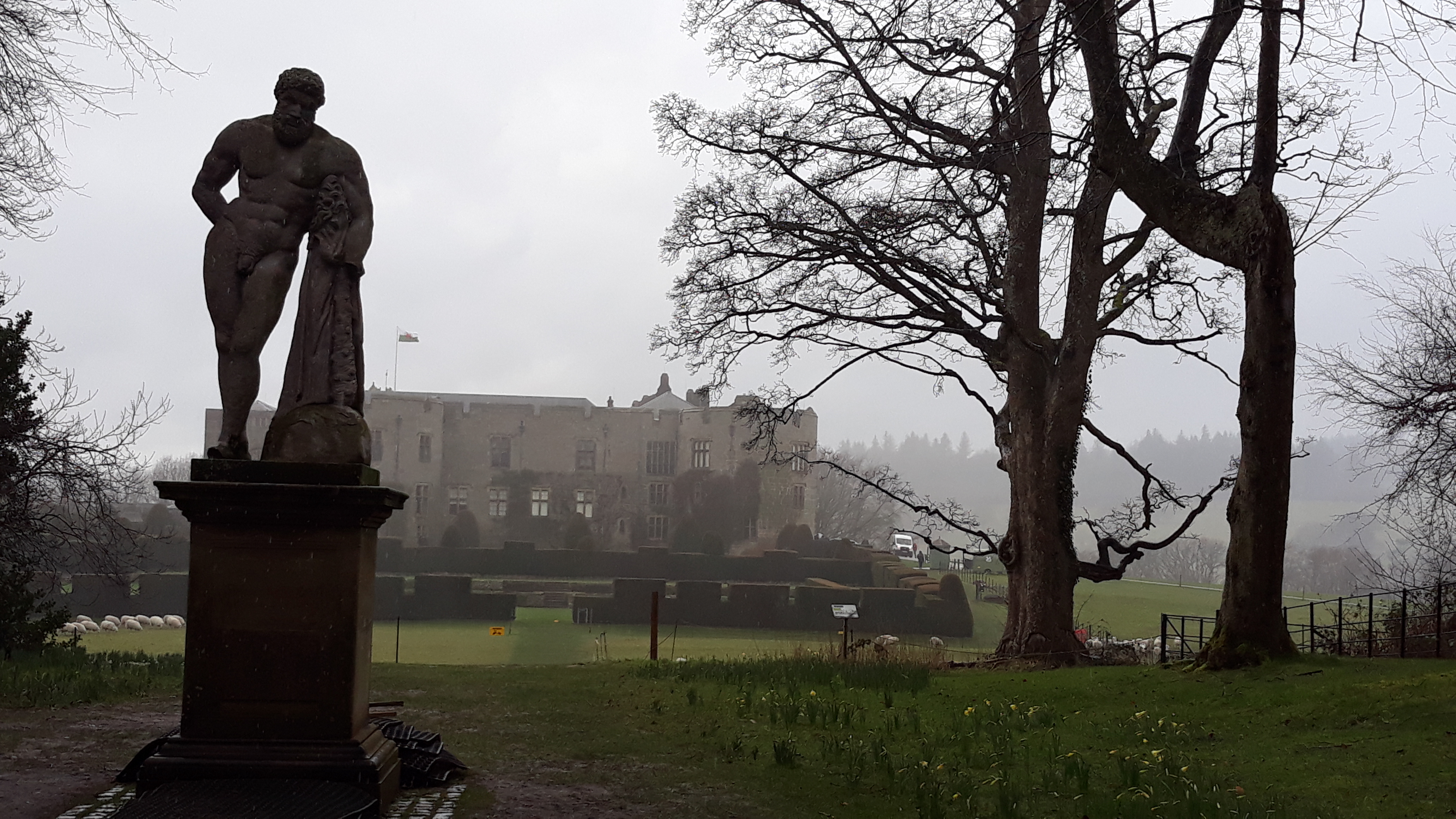 The formal gardens at Chirk are spectacular. Even in February, when most things are dormant and the colors are muted, there's something beautiful about the structure—the clipped yew hedges, the geometric beds, the long views across the Welsh countryside.